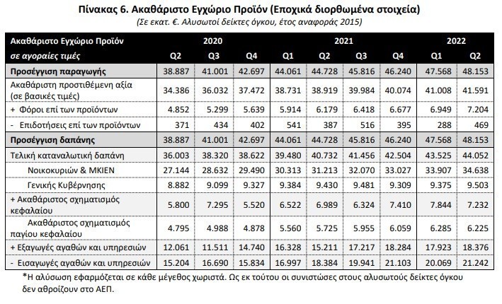 Παράλληλα, η διατήρηση των θετικών ρυθμών μεταβολής του ΑΕΠ διευκολύνουν, αν μη τι άλλο, την κυβέρνηση στην προσπάθεια οικονομικής στήριξης νοικοκυριών και επιχειρήσεων, οι οποίες πλήττονται από το εντεινόμενο κύμα ακρίβειας σε καύσιμα, ενέργεια και τρόφιμα.
